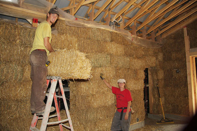 The winemaking is carried out in an interesting winery built in our vineyard in 2009. The winery consists of two large rooms, a barrel room and a tank room. The barrel room has two feet thick walls made from straw bales, giving it outstanding thermal and sound insulation and making it unique in Eastern Canada. Aside from being ecologically desirable, the barrel room has a peaceful serenity conducive to the appreciation of fine wines. For more on the benefits of straw bale construction, visit http://naturalbuildingcoalition.ca/
